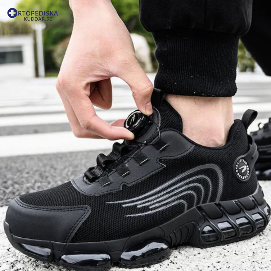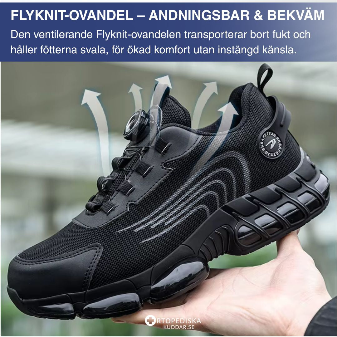 Dual-Tech skyddsskor är framtagna för dig som står och går mycket under arbetsdagen och behöver hög komfort utan att tumma på säkerheten. Den lätta konstruktionen tillsammans med stötdämpande, ortopediskt utformad sula gör att du kan arbeta långa pass utan att fötterna känns trötta eller ömma.