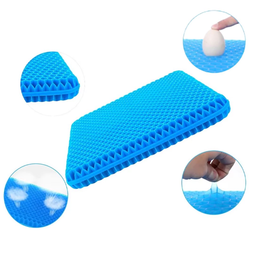 Upplev ökad komfort och bättre hållning under hela dagen med vår ergonomiska gelsittdyna. Den innovativa bikakestrukturen fördelar kroppsvikten jämnt och minskar trycket på känsliga områden som svanskota, höfter och nedre rygg. Samtidigt möjliggör det ventilerande materialet god luftcirkulation som håller dig sval även vid långa sittperioder.