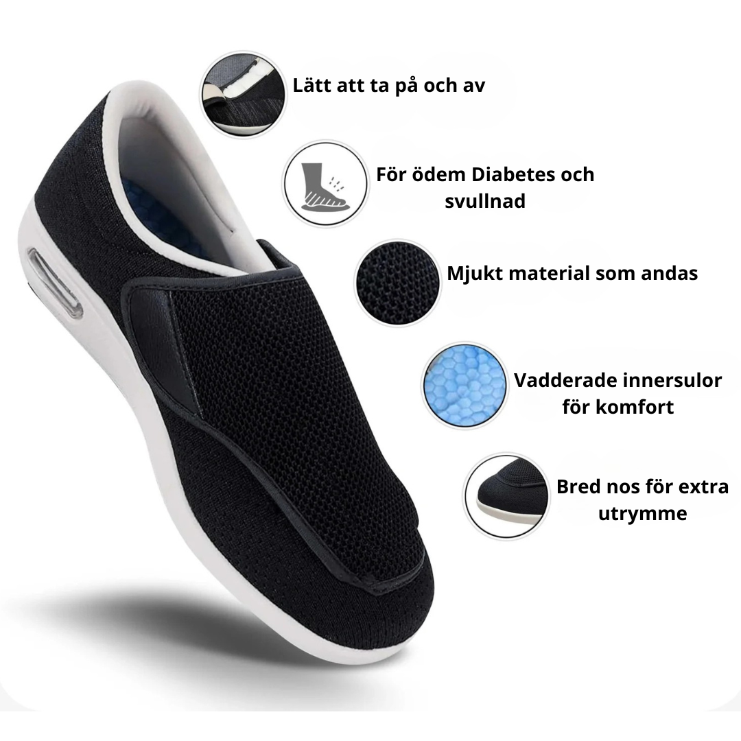 Tack vare den justerbara designen och adaptiva passformen är de Ergonomiska Bredd Komfortskorna de lättaste skorna att ta på och av.