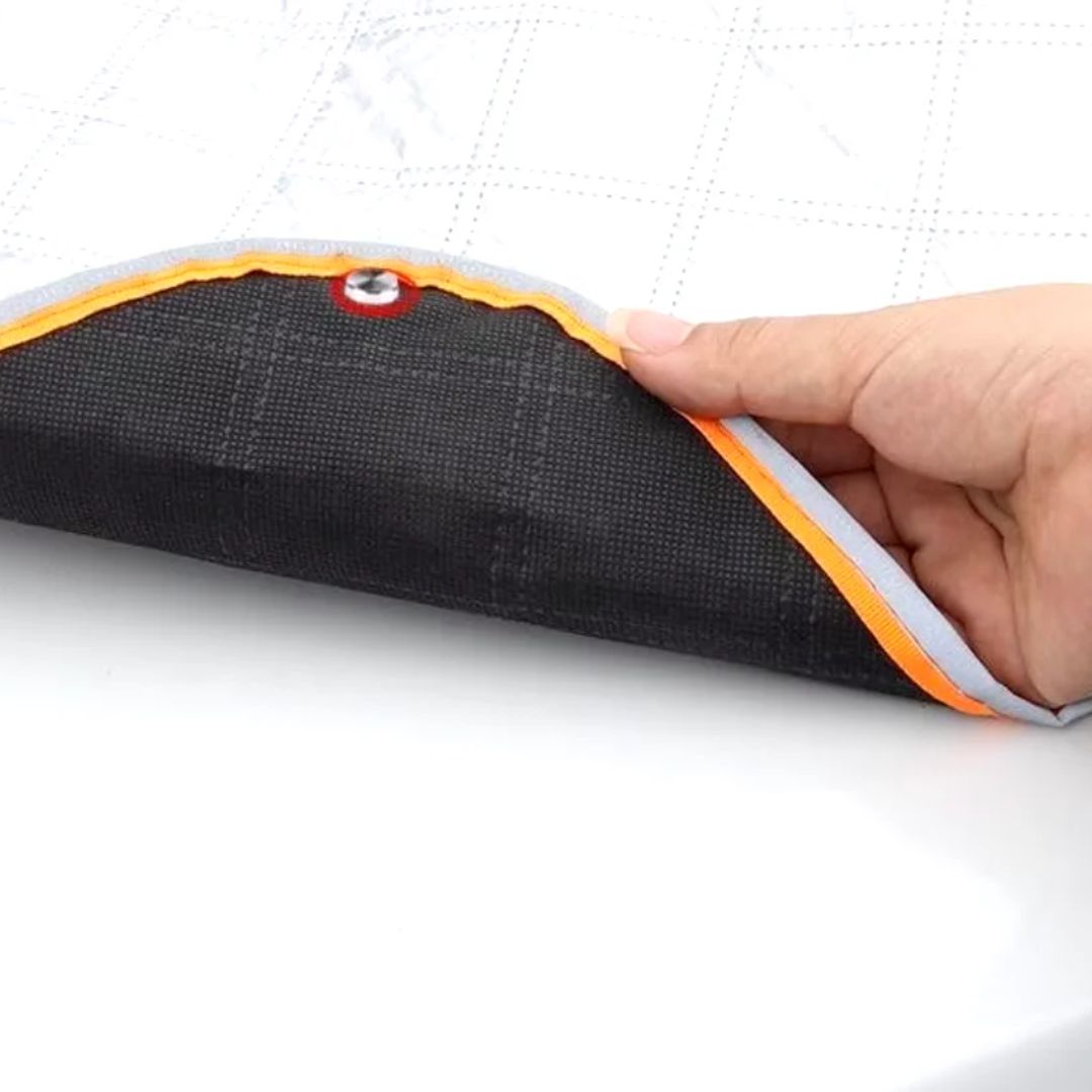 Magneter placerade inuti tyget håller skyddet på plats även i hård vind, utan att repa lacken.