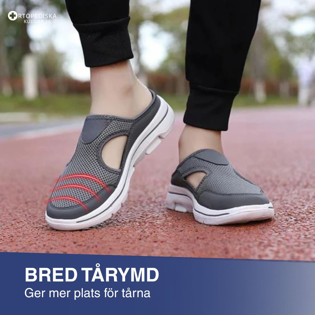 Dessa stötdämpande sandaler är skapade för dig som vill minska belastning på fötter, knän och rygg utan att kompromissa med stil eller rörelsefrihet. Den ergonomiska fotbädden och den elastiska sulan absorberar stötar vid varje steg och ger en lätt, fjädrande känsla.