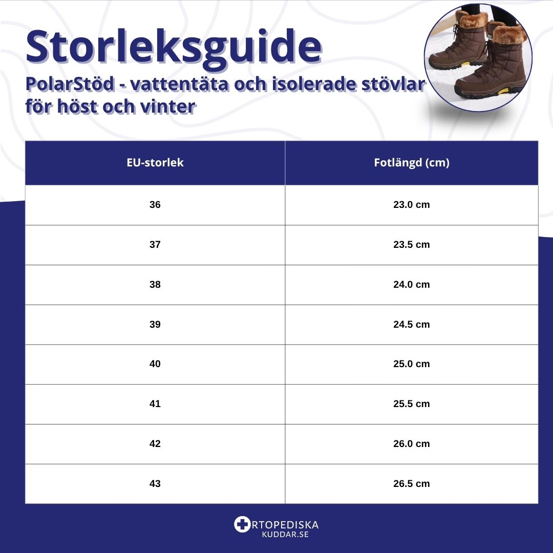 Använd EU-storlek och fotlängd (cm) för att välja den perfekta passformen.