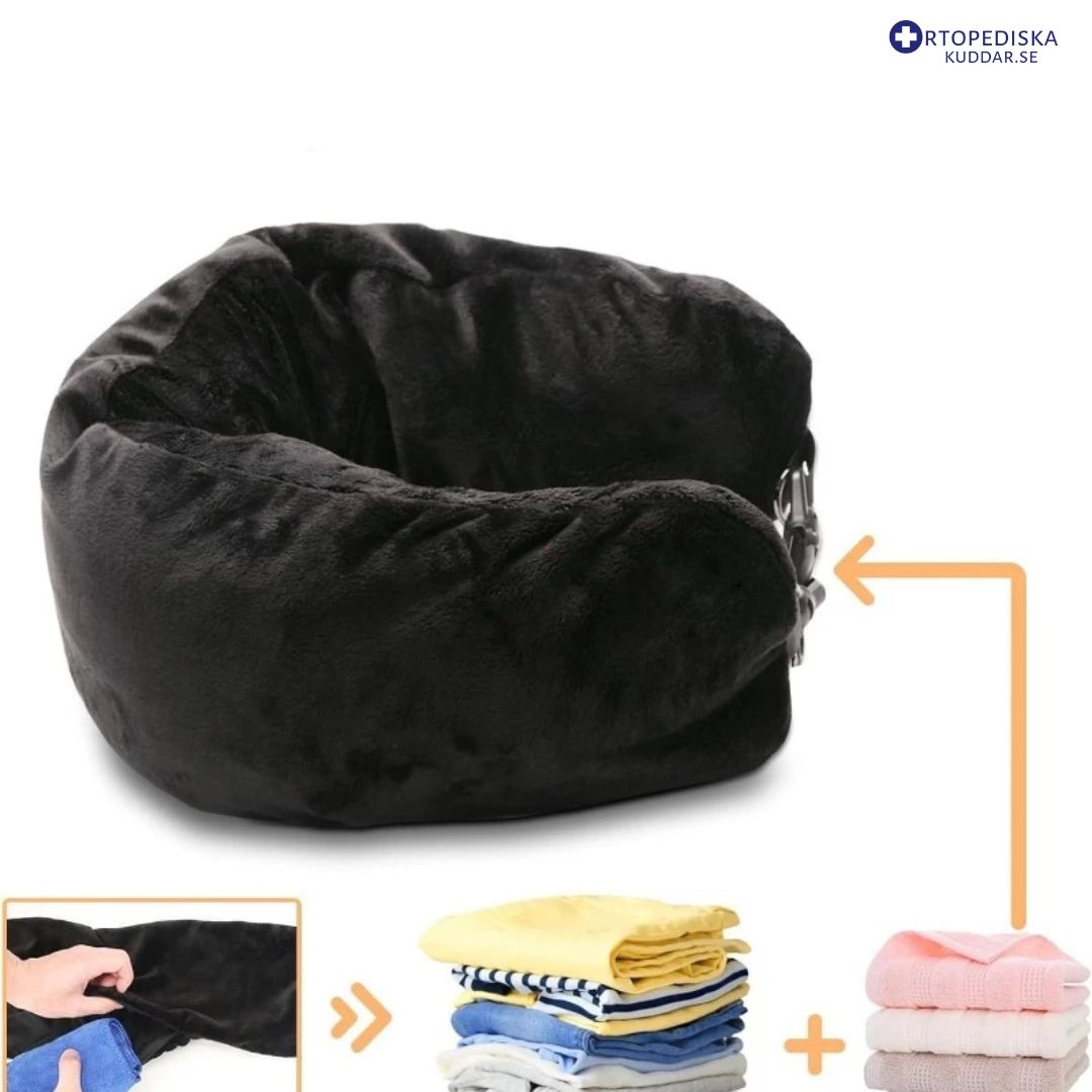 Med sin dubbla funktion är denna resekudde en räddare i nöden för dig som reser med begränsat bagageutrymme men ändå vill resa bekvämt.