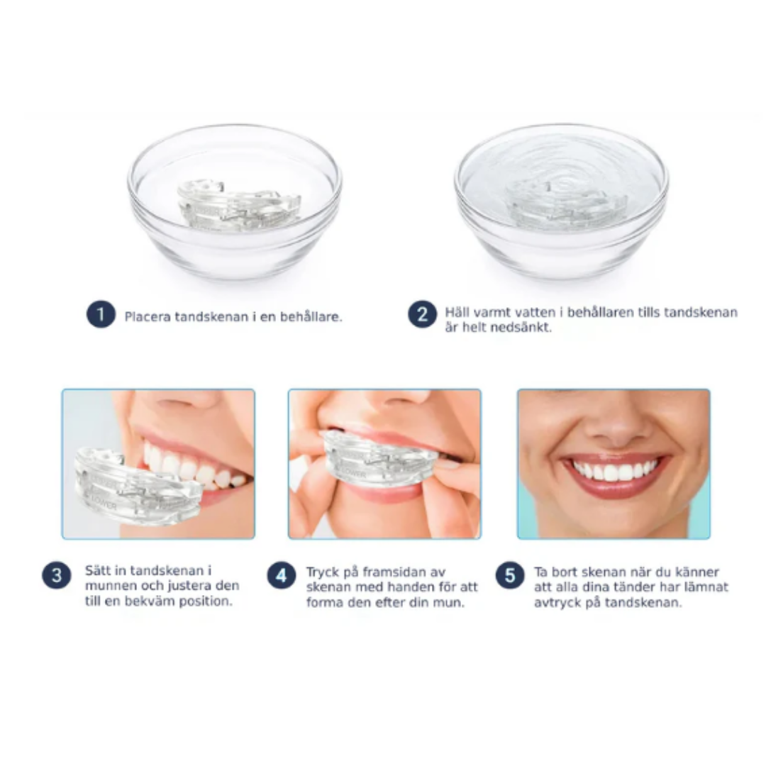 Få en mer vilsam och återhämtande sömn med vår Justerbar tandskena - minskad snarkning. Denna effektiva och hygieniska tandskena är designad för att minska snarkning och skydda dina tänder från tandgnissling. Tillverkad av mjukt och flexibelt silikon, ger den en säker och bekväm passform hela natten. Med sin kompakta design och medföljande resefodral, är den lätt att ta med överallt. Justerbar och enkel att använda, är denna tandskena ett smart val för att förbättra din sömnkvalitet och skydda dina tänder på ett effektivt sätt.