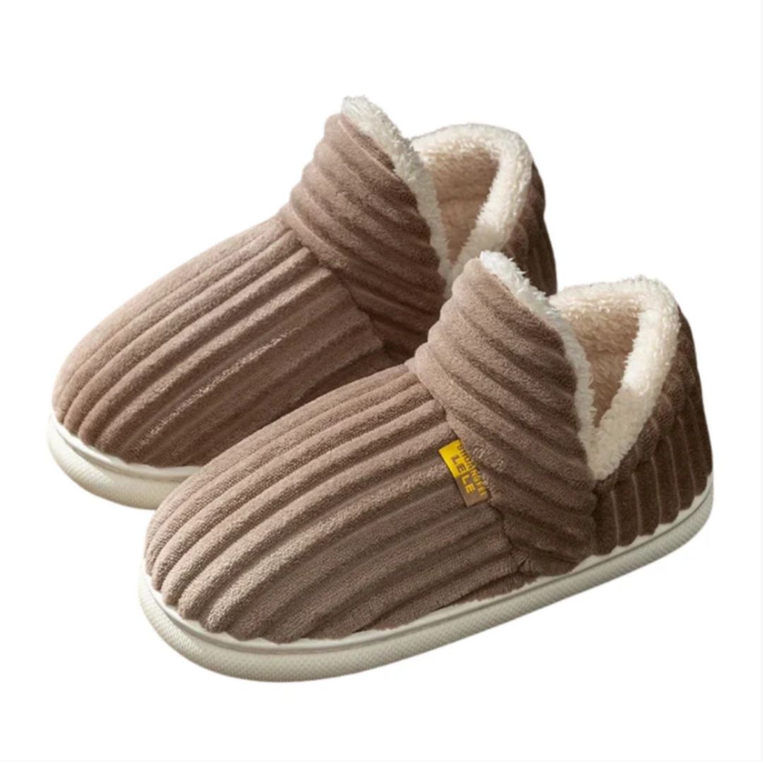 Våra vintertofflor är designade för att hålla dina fötter varma och stabila hela vintern. Med mjukt foder som värmer kalla fötter och en halkfri PVC-sula för trygghet på hala golv, är dessa tofflor både bekväma och funktionella. Den rundade klacken på ca 1,5 cm ger extra stöd, vilket gör dem perfekta för långvarigt inomhusbruk. Den enkla slip-on designen gör dem lätt att ta av och på, och de finns i flera storlekar som passar hela familjen.